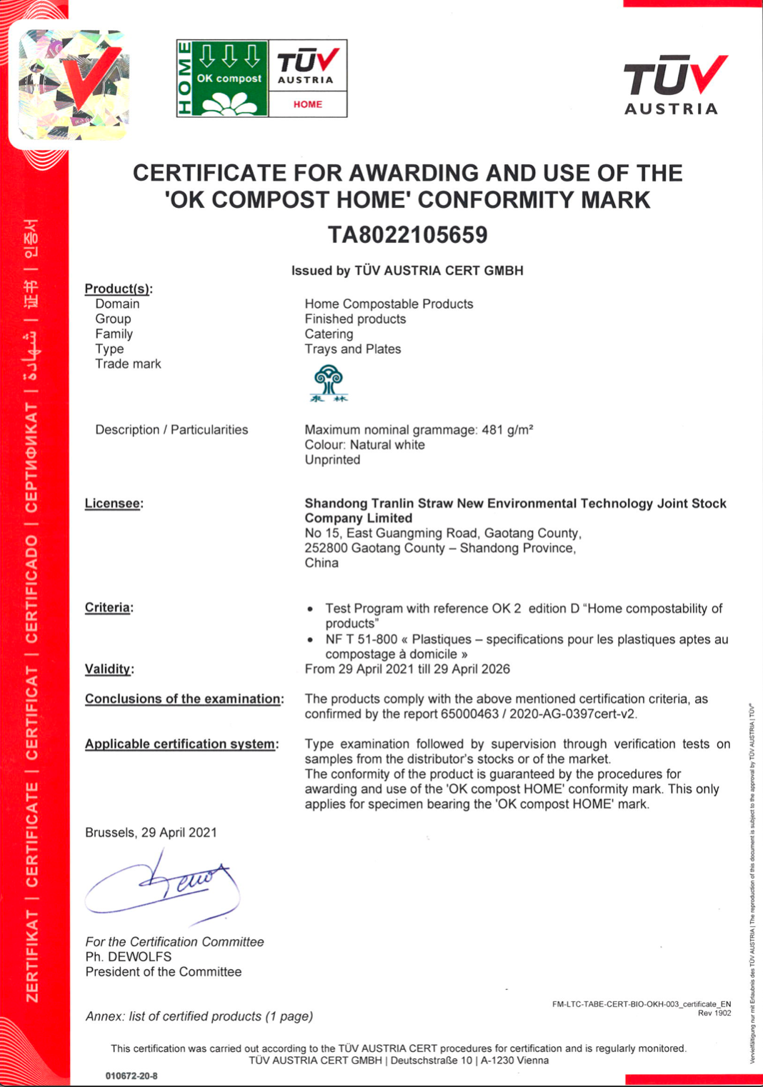 Test: "OK COMPOST HOME" Conformity Mark TA8022105659