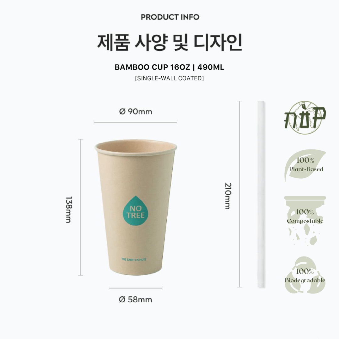 [NoPaper from Tree] Biodegradable Disposable Bamboo Cup with Plant-starch Coating.