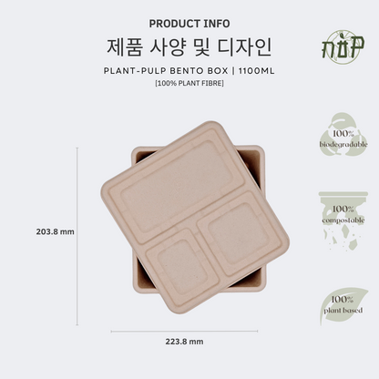 [100% Plant Fibre] Certified compostable plant-based bio-degradable disposable 3 Compartment Bento Box with Lid. Raw material from organic plant-fibre waste.